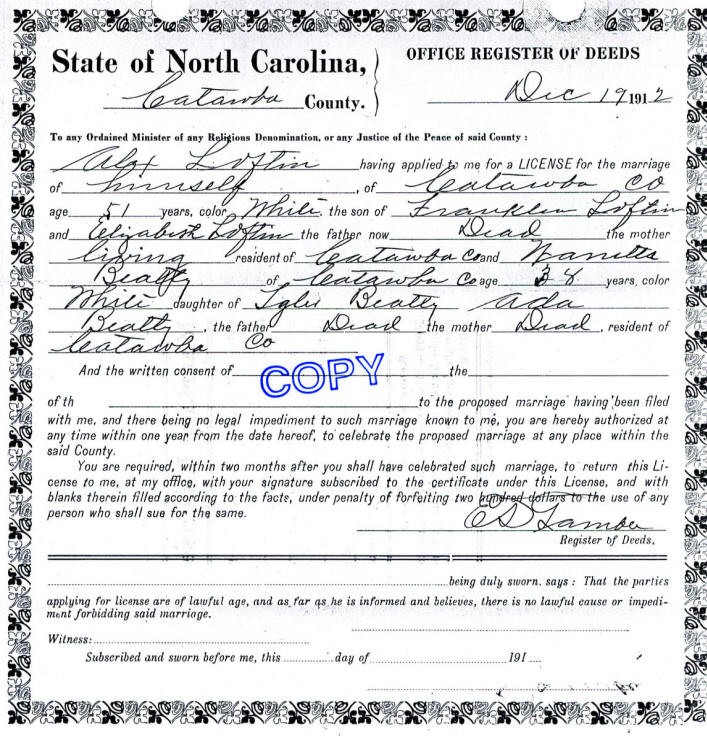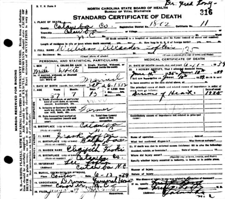 11 Jun 1939, Catawba County, NC |