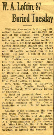 William Alexander Loftin's Death