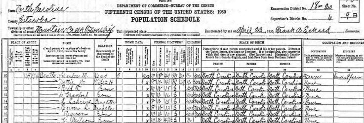 1930 Catawba County Census, Mountain Creek Township |