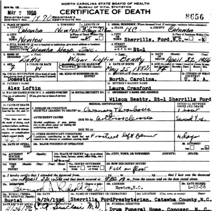 Zettie died 22 Apr 1956. Her Death Certificate shows the