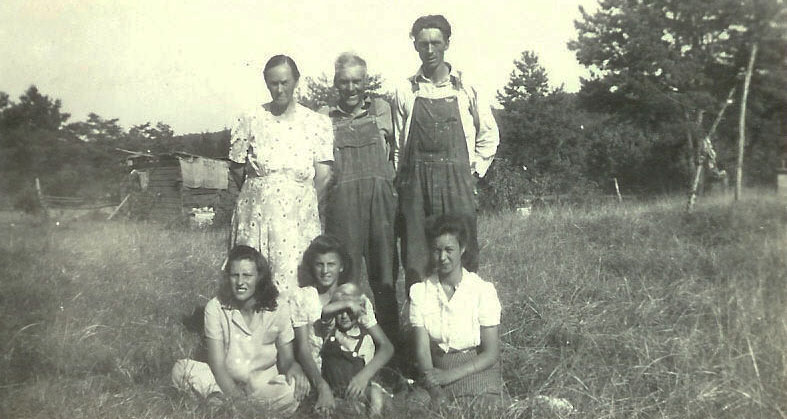 Alec holding Pearl, Lee, Laura holding Cordie, Frances, Alonzo,