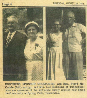 Saturday, 02 Aug, the annual McCorkle family reunion is set at