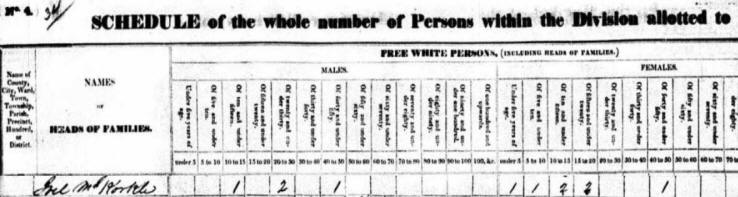 Miller McCorkle) and one "Free White Female" between the ages