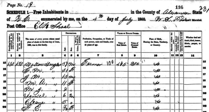 being Julius Douglas who married Mahala's sister, Sarah Louise