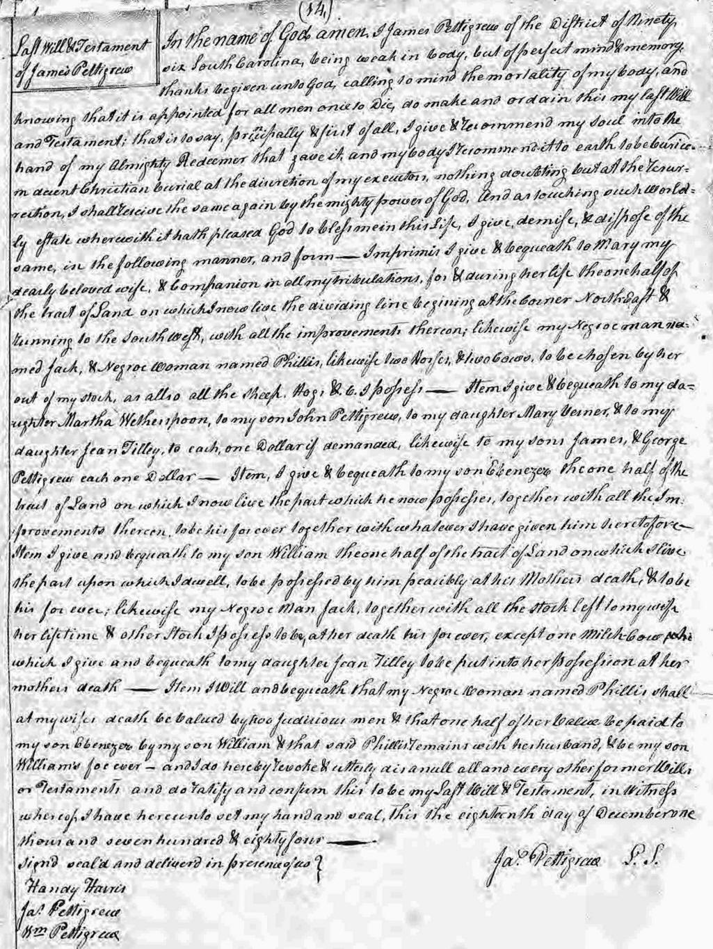 Last Will & Testament of James Pettigrew -