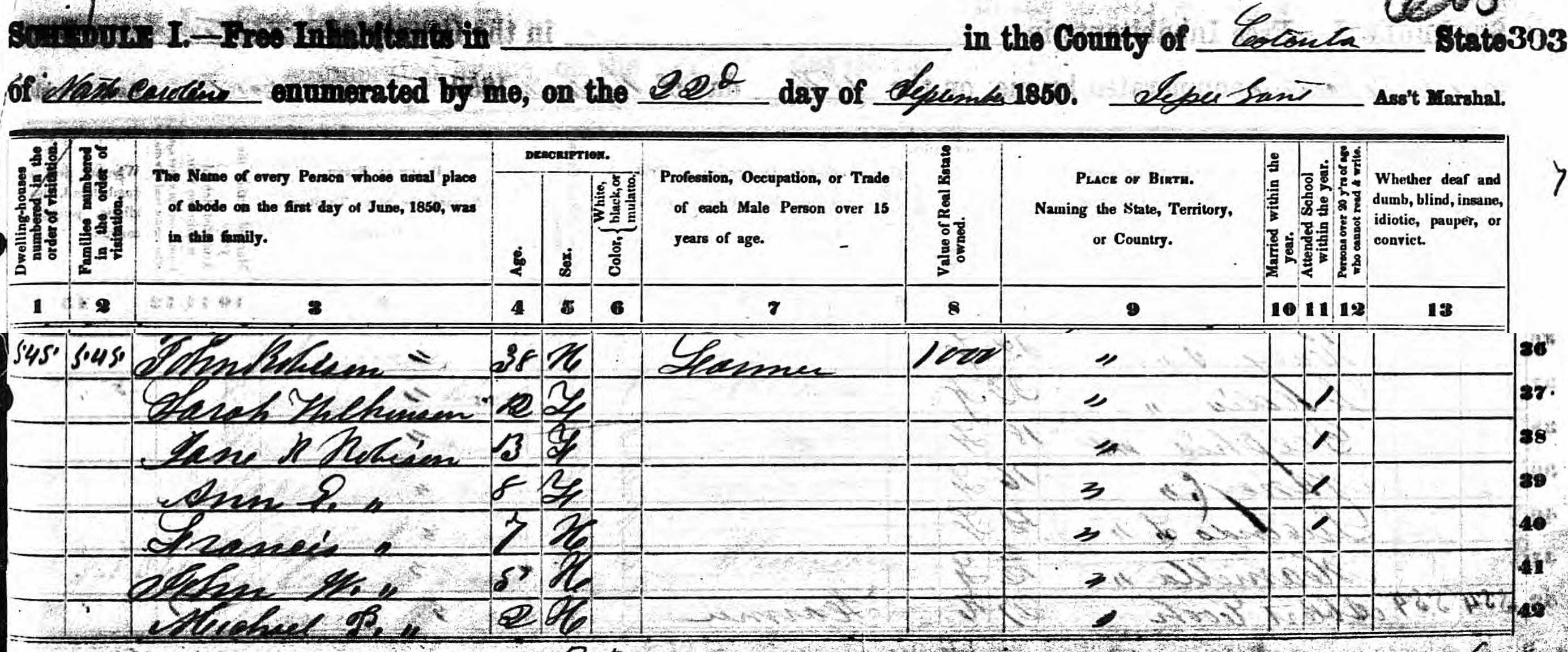 Robinson, born June 19, 1813. Married, 1st: Annie