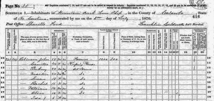 Children of John Simpson Robinson and Mary Ann Milligan |
