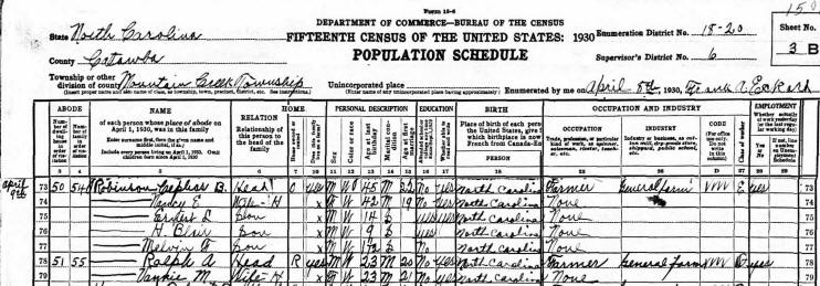 The 1930 Census shows Ceaphas and Bessie Robinson living in