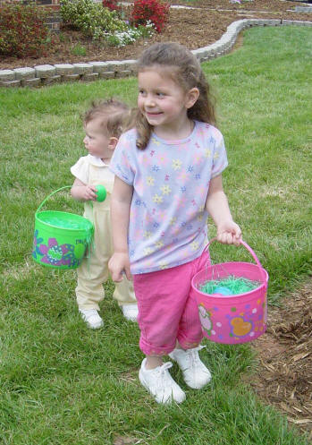 Savanna and Alexandria hunt Easter eggs in Great Granny Willie's