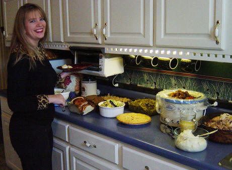 Brad, Leslie, Philip & Carolyn fill their plates with some