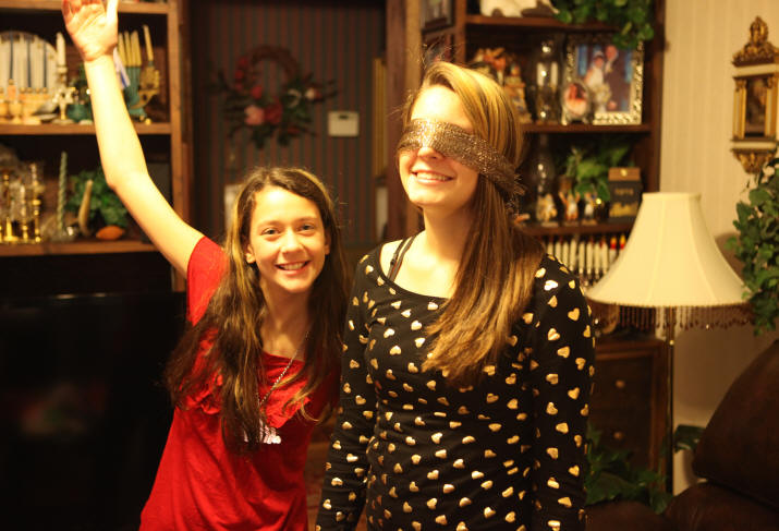 blindfold. Ask Aunt Leslie to put it on her. After