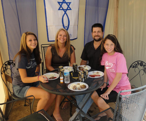 Eating dinner with Poppi & Nonni in their "sukka" (Hebrew:
