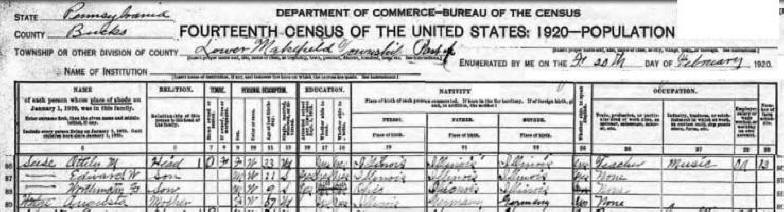 The 1920 Census shows the family living in Bucks County,