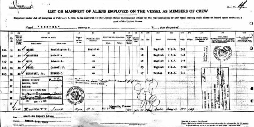 Worthy's crew title was "O" - but unfortunately I haven't