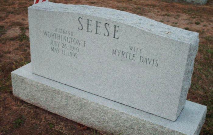 Headstone for Worthington Frederick Seese Sr. and Myrtle May