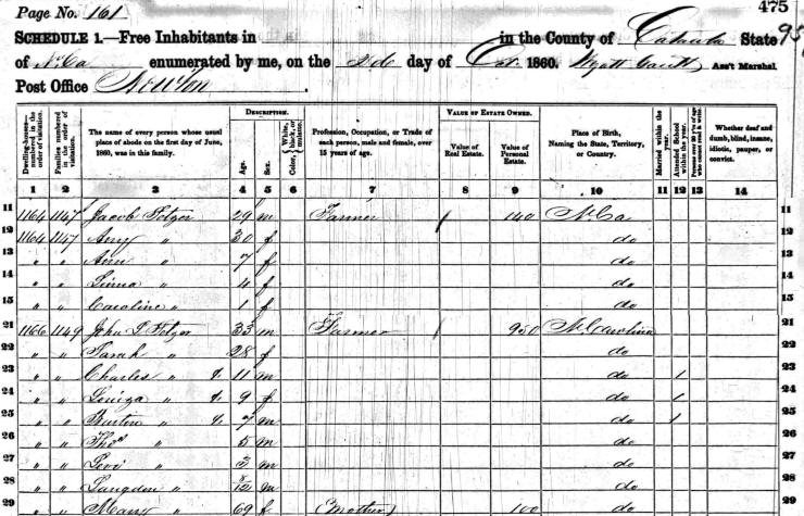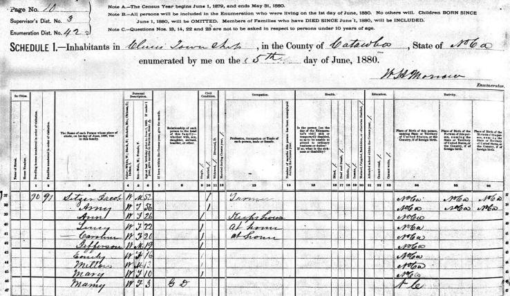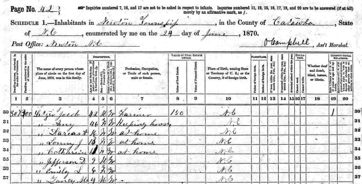 The 1870 Catawba County Census shows that Jacob and Amy were