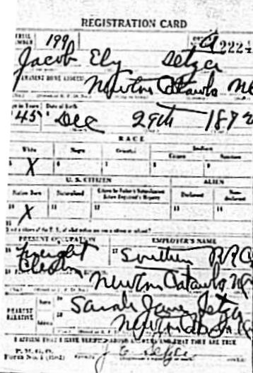 Jacob Eli Setzer died 11 Feb 1957 from a cerebral hemorrhage.