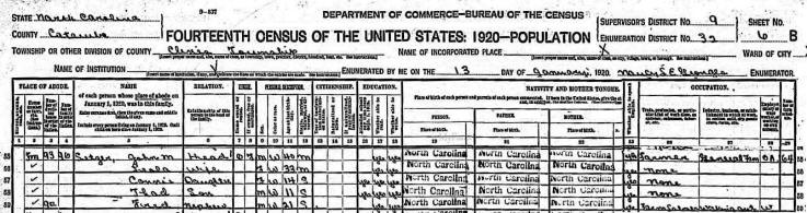 1920 Catawba County Census |