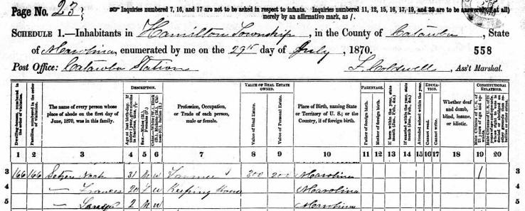 Born: 06 Jul 1838, Catawba County, NC Died: