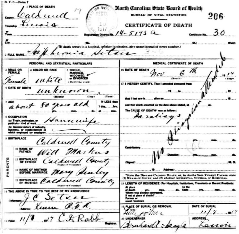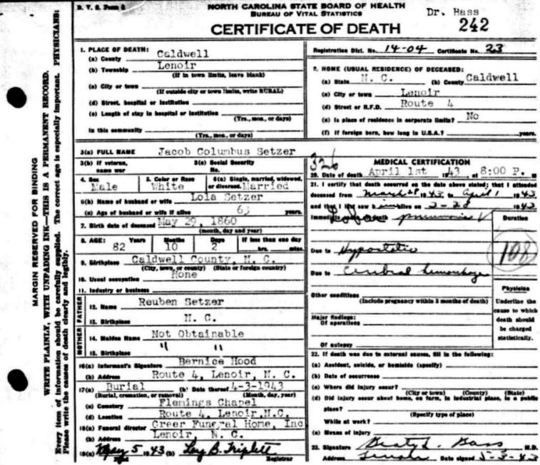 Jacob Columbus Setzer died 01 Apr 1943 as a