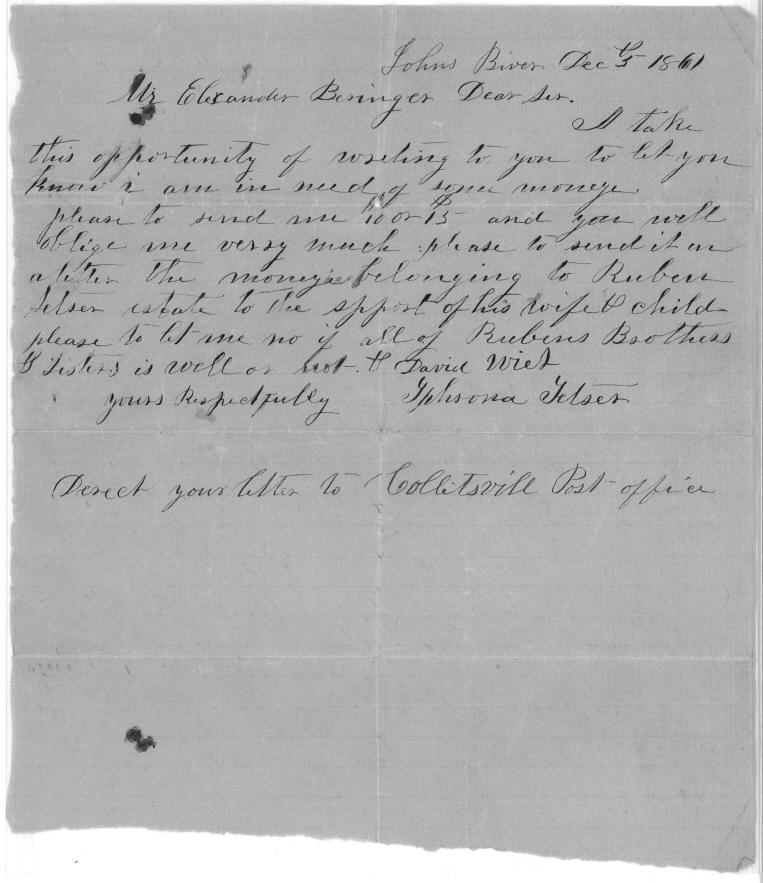 Reuben's mother, Polly Wike Setzer, died about 1842. That same year