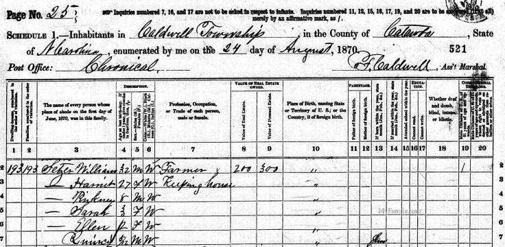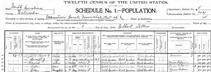 The 1900 Catawba County Census shows William and Harriet living