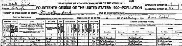1920 Catawba County Census, Catawba Station |