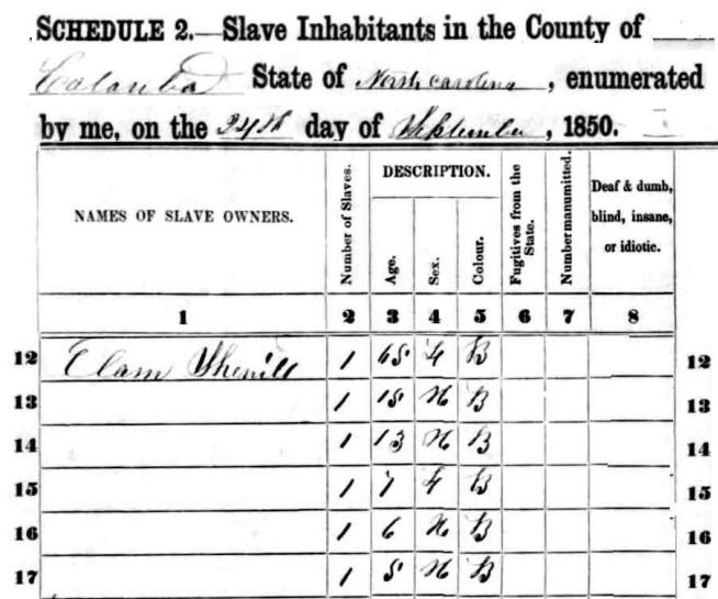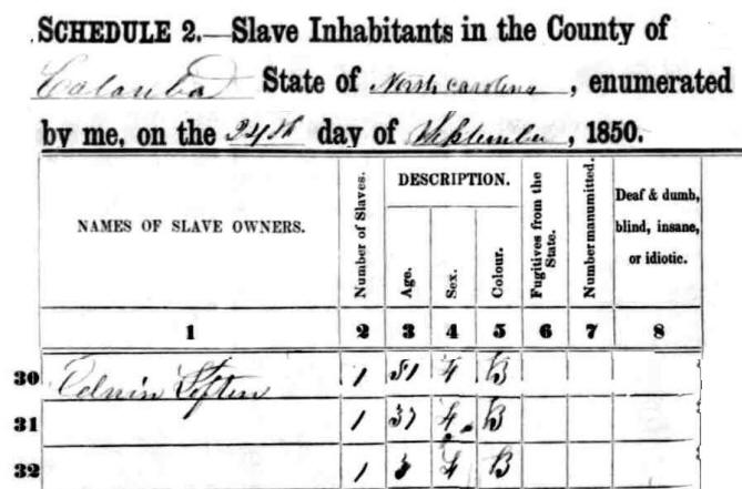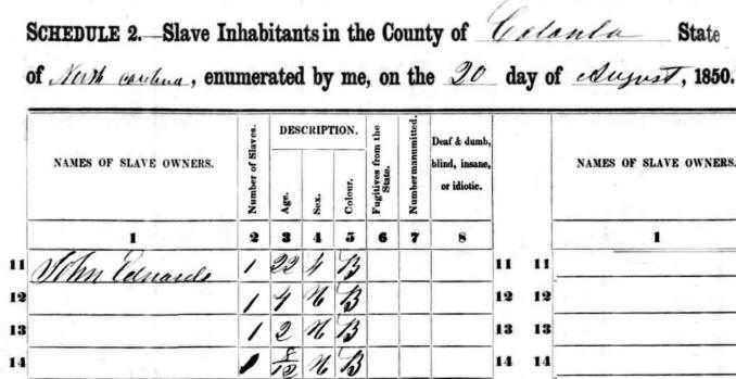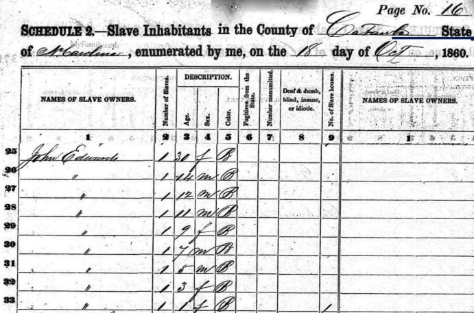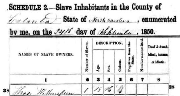 County Slave Schedule as having 2 slaves, a 38-year-old female