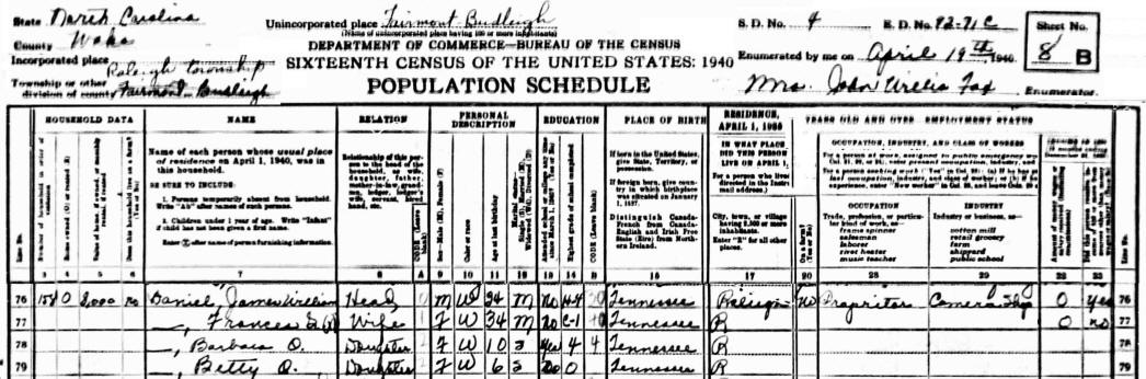 Fairview Road, Raleigh, NC. By 1940, James was the proprietor of