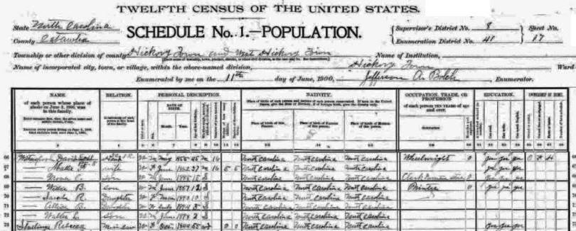 1910 Catawba County, NC Census |