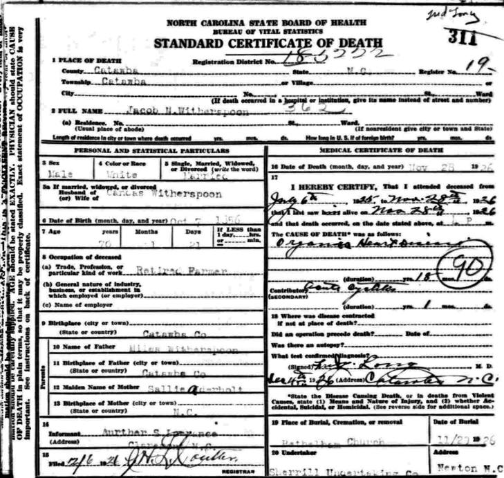 Born: 07 Oct 1856, Catawba County, NC Died: