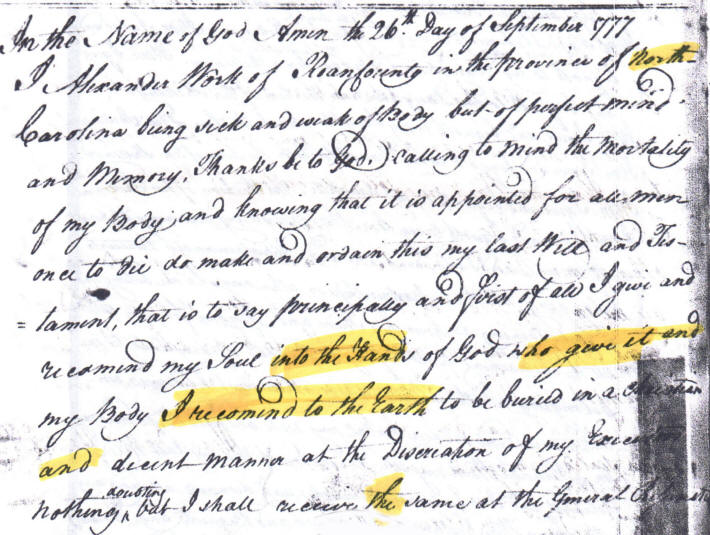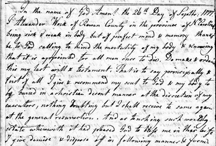 ALEXANDER WORKE (Iredell Co.) for 20L sold a fourth of 2,400